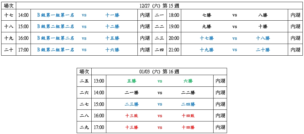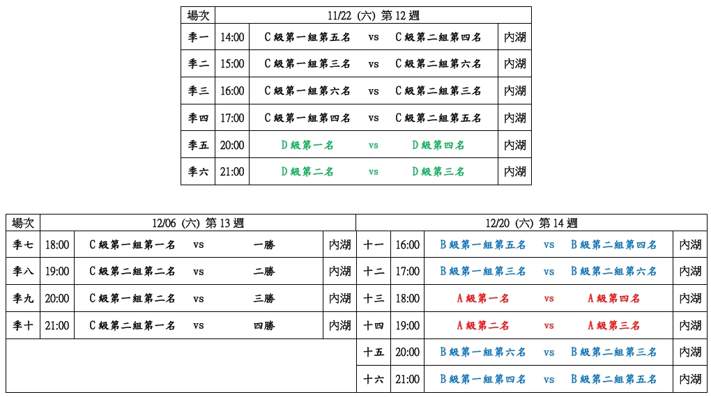NEIHU第十三屆週六籃球聯賽季後賽賽程表