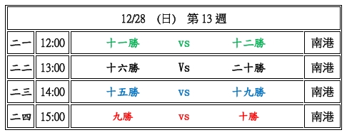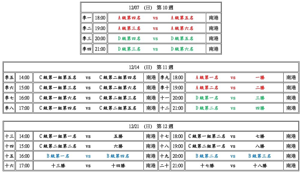 NANGANG第二十四屆週日籃球聯賽季後賽賽程表